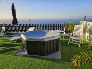Mitbenutzung zweite, großzügige Terrasse (ca.70 m2) mit beheiztem Whirlpool